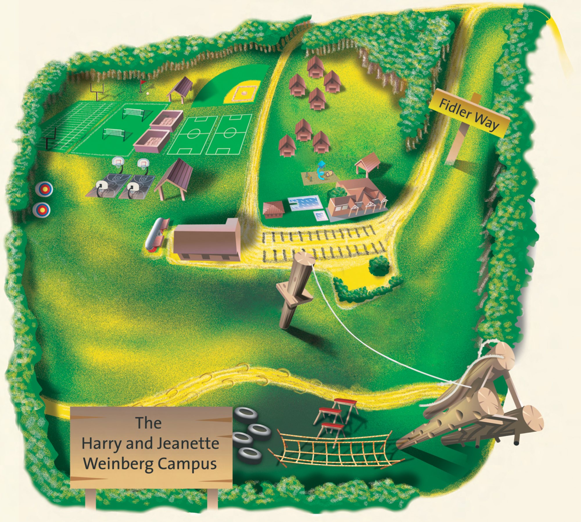 The Cohen - Davison - Weinberg Community Center provides a beautiful and spacious multi-purpose room ideal for mealtimes, assemblies, concerts, and performances. The Crane Early Childhood Center enables our youngest campers to enjoy bunk rooms and an arts & crafts center designed exclusively for them.